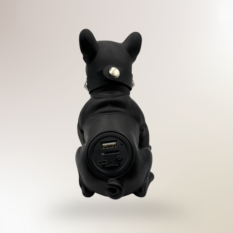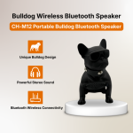 A compact wireless Bluetooth speaker shaped like a bulldog wearing sunglasses.